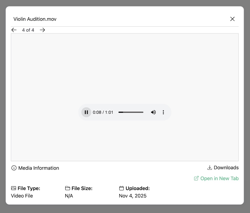 Artists can add media to Blind Video questions exactly as they would for any other video upload, and Administrative users for organizations can review those videos to confirm candidate identities and media integrity.